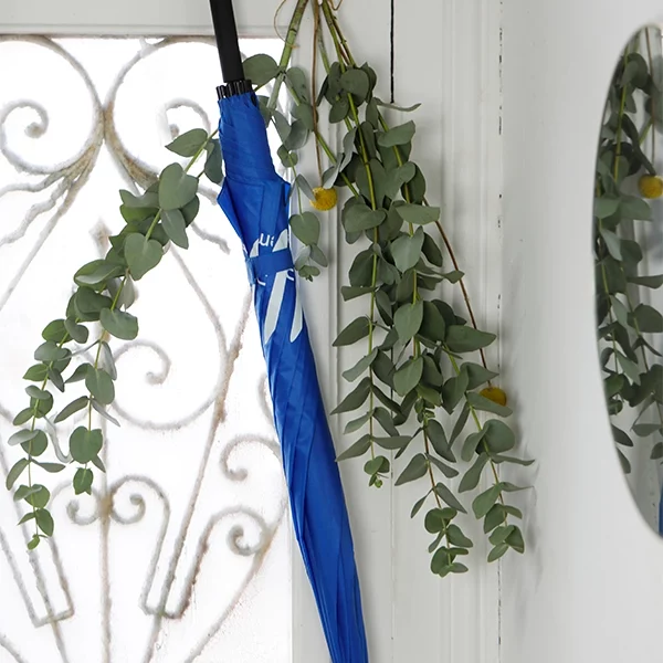 Dans un objectif de rusticité et de robustesse nous avons sélectionné un modèle droit afin d’éviter l’usure mécanique des parapluies pliables, cela garantissant une grande longévité et réutilisation. C’est un modèle « demi-golf » à ouverture automatique, équipé d’un mat métallique est d’une épaisseur suffisante pour ne pas plier lors d’un usage inapproprié, aussi nous avons choisi des baleines en fibre de verre pour résister au vent et aux efforts importants de flexion. La poignée toucher caoutchouc permet un confort de prise et le tissu est en polyester 190t ou 210d à la demande, chaque détail est pensé pour que votre parapluie tienne dans le temps.